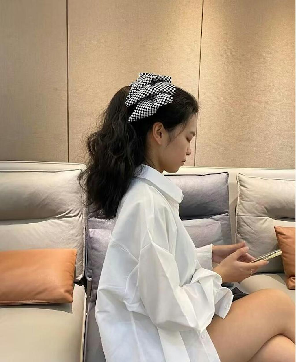 - Plaid bow-Grey / 12inch / Curly - $29.99
