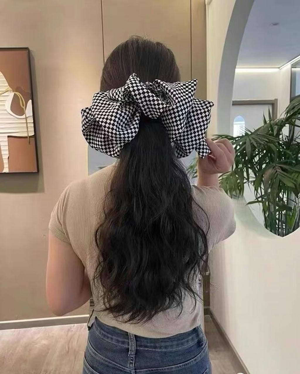 - Plaid bow-Black / 12inch / Curly - $29.99